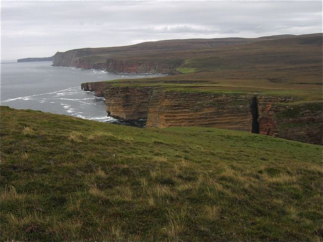 | Sea Cliffs looking towards the tidal island of Birsay |