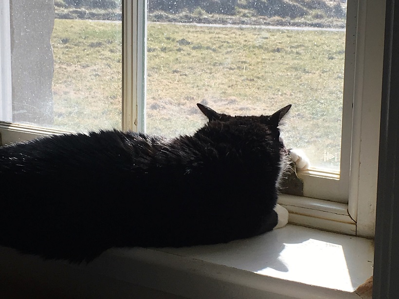 Earlier Button was snoozing in the sun. I love how she has her paw wrapped round the window catch!